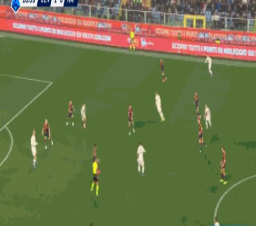 衛冕冠軍做客挑戰熱那亞,開局就被當頭一棒。第2分鐘,門將梅雷特犯規送點,馬利諾夫斯基一蹴而就,熱那亞1-0,取得夢幻般開局。