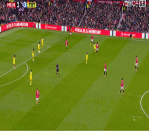 第二個進球(第81分鐘)則展示了曼聯進攻的層次感。在熱刺體力透支、防線松散之際,右后衛達洛特從容起球傳中,后點插上的B費用一記非常規的撞射將比分鎖定為2-0。此球讓B費達成了為曼聯直接制造200球(104球96助)的里程碑。
