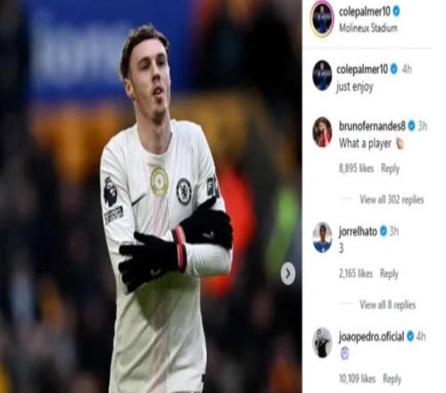 切爾西隊(duì)友哈托、若昂-佩德羅以及托辛-阿達(dá)拉比奧尤都在評論區(qū)為帕爾默喝彩,還收到了費(fèi)爾南德斯的評論,后者留言道:“多么出色的球員啊”