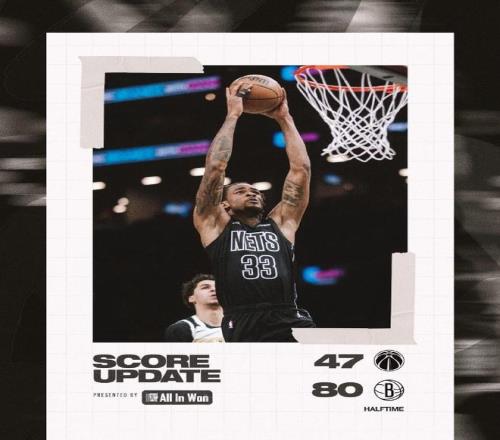 籃網過去3場連輸活塞、湖人與魔術遭遇3連敗,奇才上一場客場126-117爆冷戰勝東部第一的活塞,本賽季前兩次交鋒雙方各取一勝。本場奇才缺少濃眉哥、特雷-楊、惠特摩爾等多位球員,籃網首節就打出狂暴的攻勢,尤其是一度打出一波16-2攻勢瞬間拉開20+差距,首節結束籃網已經取得46-20領先26分優勢。