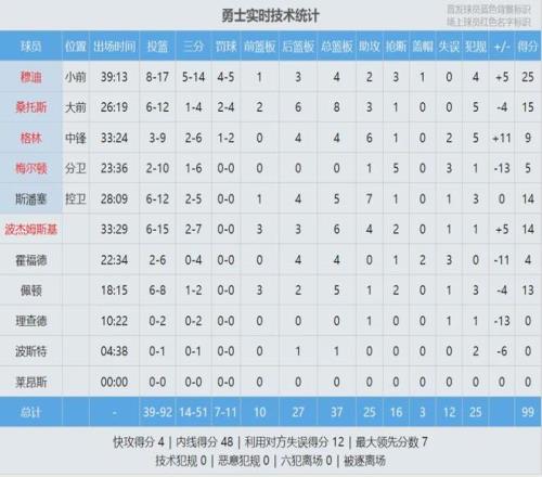勇士上半場11次助攻8次失誤,兩隊“助攻失誤比”都接近1比1。湖人兩大核心詹姆斯和里夫斯手感冰涼,詹姆斯8中2得到7+6+4,里夫斯5中1得到3+4+7。上半場最后一攻,斯潘塞迎著詹姆斯壓哨跳投打進,庫里在場邊看嗨了。