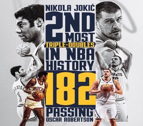 據(jù)NBA官網(wǎng)數(shù)據(jù)統(tǒng)計,此役過后,約基奇生涯搶斷數(shù)來到1000次,正式突破1000次搶斷大關(guān)。同時,這是約基奇生涯第35次單場送出15+助攻,除他之外NBA歷史所有中鋒加起來僅14次做到這一點。在另外一項數(shù)據(jù)統(tǒng)計中,這是約基奇本賽季第18個三雙,聯(lián)盟最多;同時,這是約基奇生涯第182個三雙,超越大O獨居NBA歷史第2位,僅次于威少(207個)。約基奇距離威少僅差25個三雙,卻比威少少打了506場比賽,威少的NBA歷史三雙王紀錄恐怕是保不住了,約基奇最快本賽季、最慢下賽季能夠超越威少成為新NBA歷史三雙王。