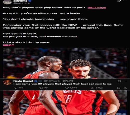 賽后面對(duì)他只是一名得分手,而非讓隊(duì)友變得更好球隊(duì)領(lǐng)袖的質(zhì)疑時(shí),杜蘭特回?fù)舻剑骸拔夷茌p松列舉出20位在我身邊打出巔峰表現(xiàn)的球員。”
