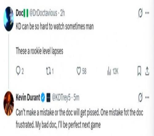 在瘋狂回懟網(wǎng)友的同時(shí),杜蘭特也虛心接受了控制失誤的建議,表態(tài)自己下一場會(huì)做到完美。
