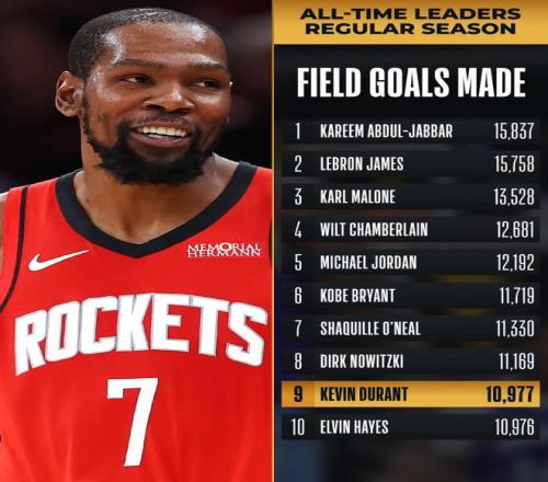 憑借這樣的表現(xiàn),杜蘭特NBA生涯投籃命中數(shù)超越埃爾文-海耶斯升至歷史第9名,接下來將追求第8名的諾維茨基。