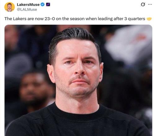本場擊敗勇士隊后,開賽至今,當湖人隊領先進入第四節時拿到了23勝0負的全勝戰績。