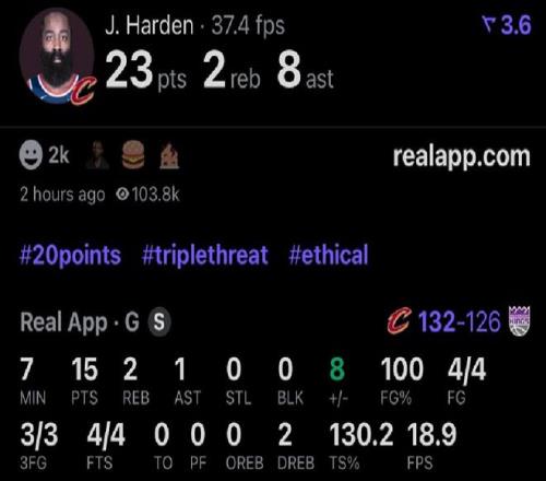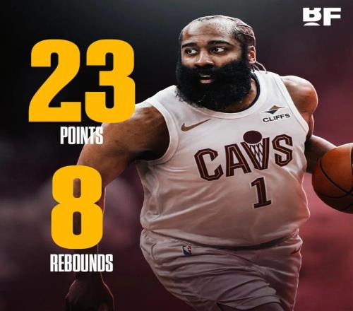 哈登騎士首秀先抑后揚,上半場6中1,下半場7中6包括關鍵時刻連續轟進兩記三分球,最終全場出戰約32分鐘,投籃13中7(三分8中5),罰球4中4貢獻23分2板8助1斷,帶隊132-126擊敗國王。