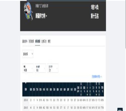 上賽季常規賽,新疆男籃取得32勝14負,勝率為69.6%;本賽季第一階段過后,他們的成績為9勝14負,勝率僅為39.1%,該勝率相比上賽季下滑了30.5個百分點。