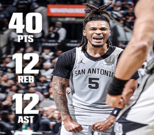 “這是他生涯至今最好的一場比賽,也是我親眼見證過的個人數據最棒的比賽之一。”馬刺球星文班亞馬稱贊自己的隊友說道。