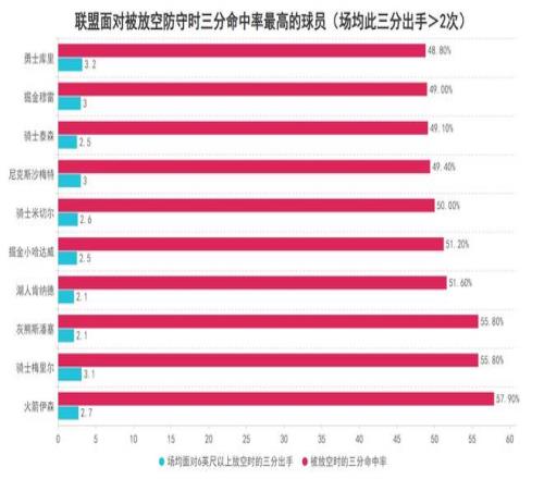 在本賽季聯(lián)盟出場(chǎng)超過(guò)20次,并且被放空時(shí)場(chǎng)均至少出手兩次三分的球員中,伊森57.9%的三分命中率高居聯(lián)盟第一,這意味著當(dāng)隊(duì)友給自己創(chuàng)造出空位三分出手機(jī)會(huì)時(shí),伊森是聯(lián)盟具備一定產(chǎn)量球員里有最高終結(jié)效率的球員,這些也可以表明雖然伊森確實(shí)有一定的技術(shù)缺陷,但只要隊(duì)友給他創(chuàng)造空位三分與接球就投的機(jī)會(huì)時(shí),那么他就是聯(lián)盟最能把握住機(jī)會(huì)的人。