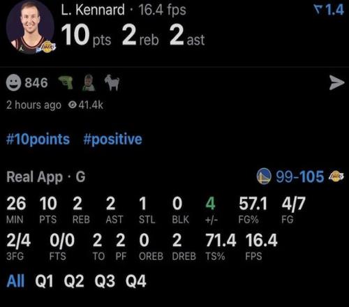 用 文森特+一個(gè)次輪簽換來的肯納德,此役完成了湖人生涯首秀,替補(bǔ)出戰(zhàn)約26分鐘,投籃7中4,其中三分4中2貢獻(xiàn)10分2板2助1斷,正負(fù)值+4。