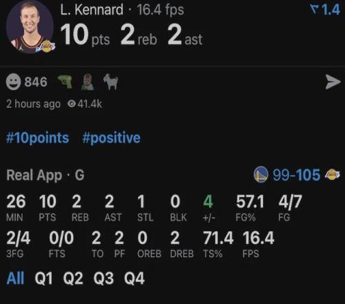 用文森特+一個次輪簽換來的肯納德,此役完成了湖人生涯首秀,替補出戰(zhàn)約26分鐘,投籃7中4,其中三分4中2貢獻10分2板2助1斷,正負值+4。