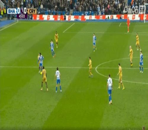 第31分鐘,三笘薫左側突破傳中,水晶宮門前一片混亂,亂戰中德克伊珀近距離迎球轟門被對方后衛封堵。