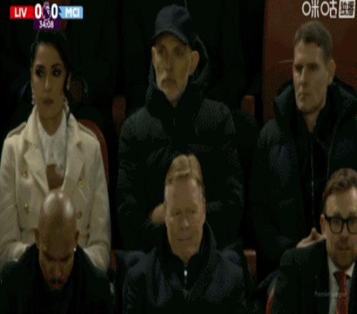 第34分鐘,鏡頭給到現場觀戰的圖赫爾和羅納德-科曼