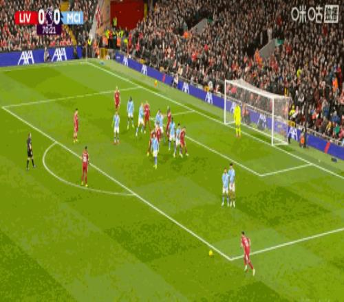 第74分鐘,索博斯洛伊遠距離任意球轟出精彩世界波,利物浦1-0曼城!