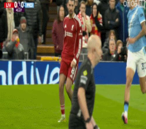 第90+8分鐘,利物浦球員禁區亂戰倒地,主裁判未予理睬