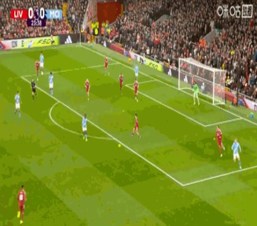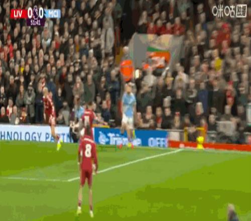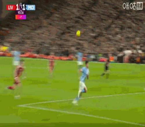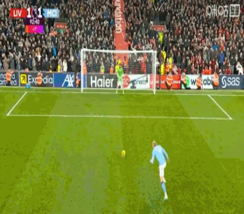 第84分鐘,哈蘭德頭球擺渡,B席門前鏟射破門,曼城扳平比分1-1利物浦!