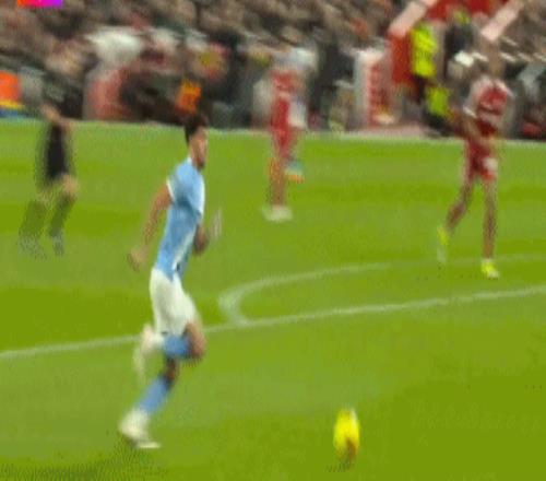 索博斯洛伊打入任意球世界波,曼城以0比1的比分落后。第83分鐘,哈蘭德頭球擺渡,貝爾納多-席爾瓦鏟射破門,1比1!