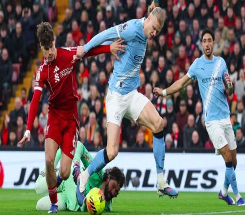 第93分鐘,哈蘭德操刀主罰,穩穩將球打進,首次攻破安菲爾德的球門,追平父親在利物浦主場打進3球的紀錄。