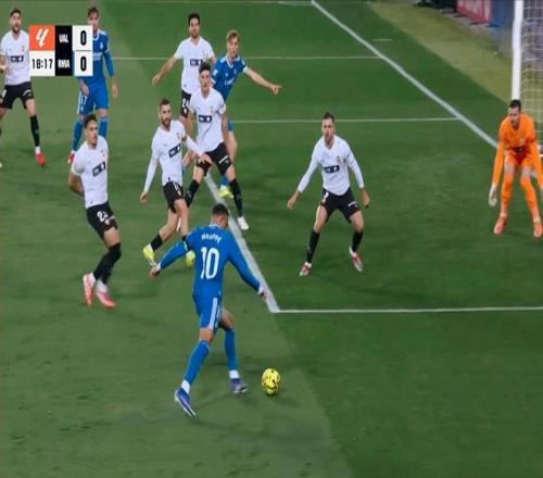 開場之后,雙方基本旗鼓相當。前場的姆巴佩,在沒有了維尼修斯的牽制之后,顯得獨木難支。反觀主場作戰的瓦倫西亞,反擊打的有聲有色,一度壓制住對手,制造出了非常多的角球機會。