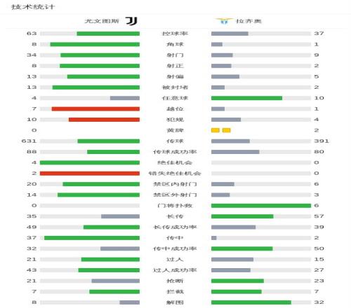 第45+2分鐘,佩德羅禁區(qū)左路抽射變線破門,尤文0-1拉齊奧