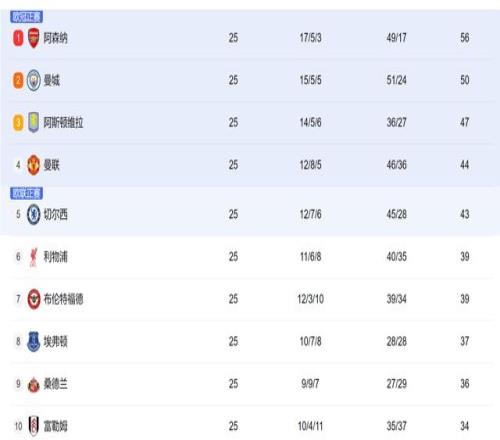 一場2-1之后,曼城積分50分,落后阿森納6分,但是也領先了身后阿斯頓維拉3分。而利物浦,則只有39分,距離歐聯杯賽區也有4分差距。