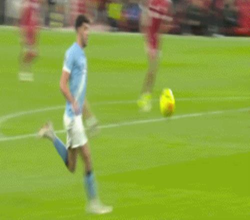 比賽第84分鐘,哈蘭德頭球擺渡,B席鏟射得分,曼城1-1扳平!
