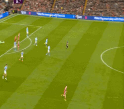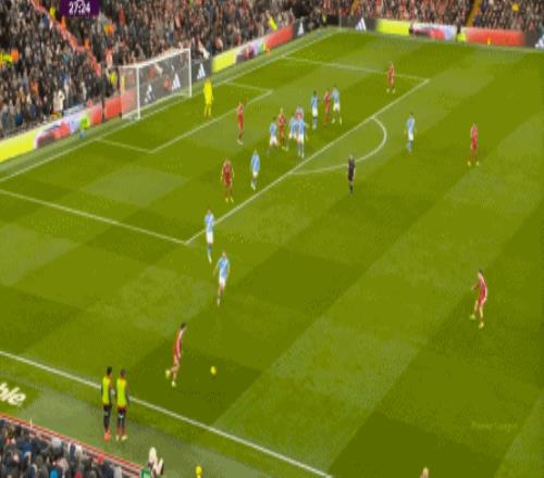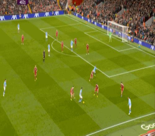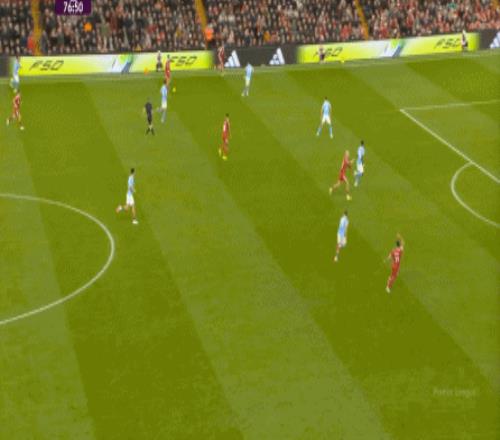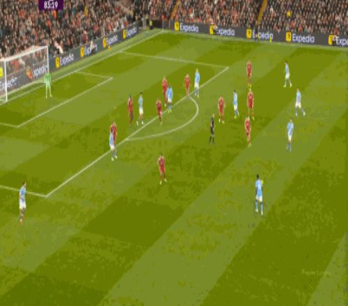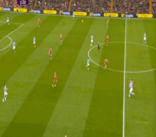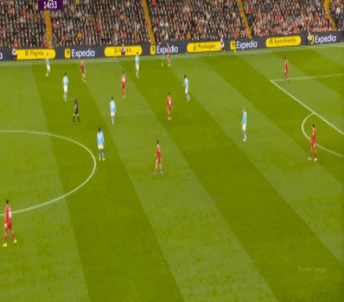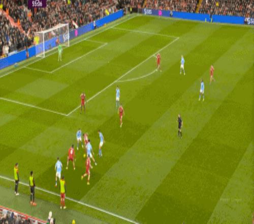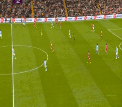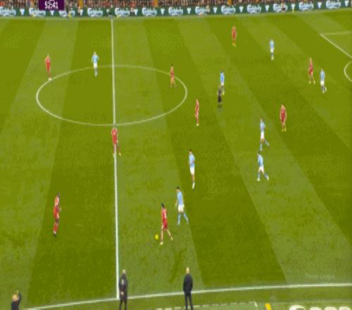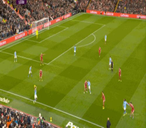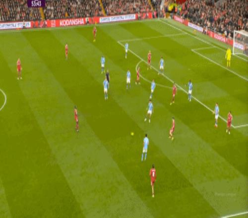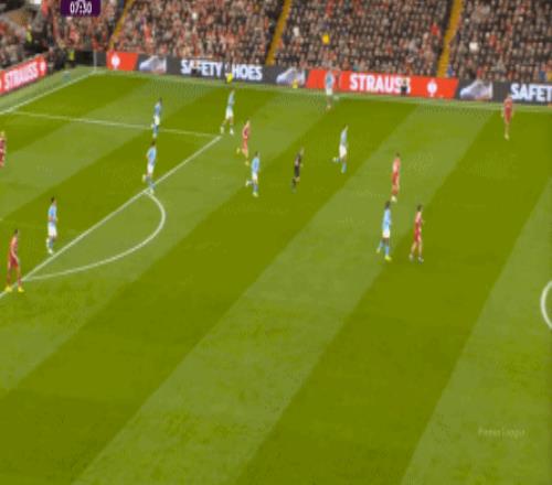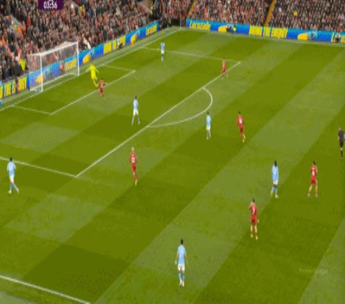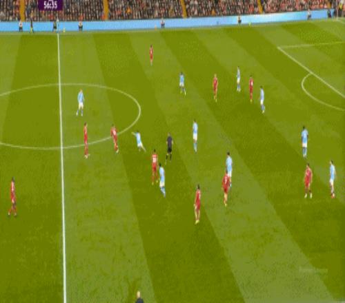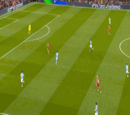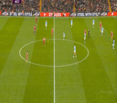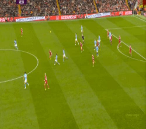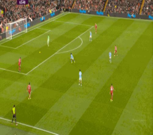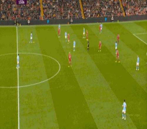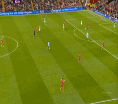 于是,在真的通過進(jìn)攻畫面調(diào)動(dòng)起場(chǎng)上的情緒之后,利物浦開始能將壓力施加到曼城的后衛(wèi)身上了: