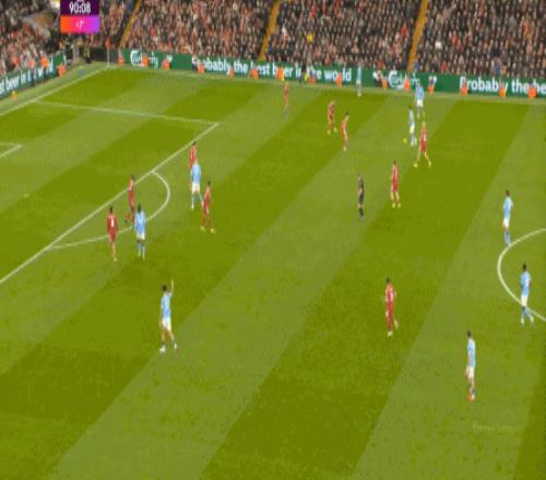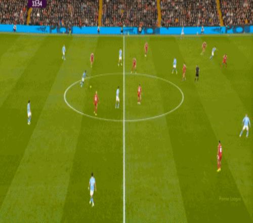 曼城則在中路持續(xù)制造著利物浦的盯人和防守空當(dāng):