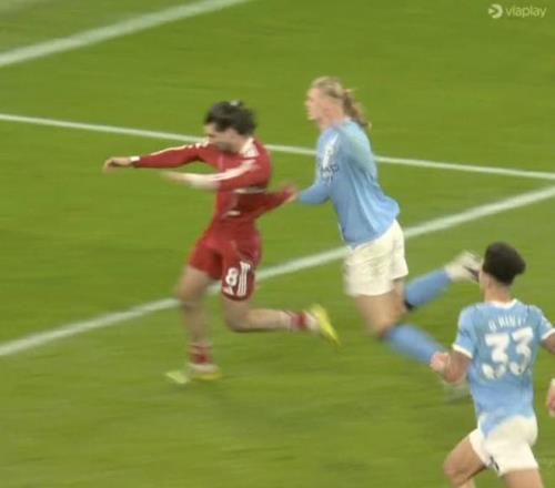 曼城2-1領先后,利物浦大舉壓上想要扳平。比賽第100分鐘,曼城的法國中場謝爾基得到反擊良機,他在中場似傳似射把球踢向空門,皮球最終入網,比分改為3-1。然而,利物浦球員卻喋喋不休地找主裁理論,投訴哈蘭德最后時刻拉拽了索博斯洛伊,導致后者無法保護空門。