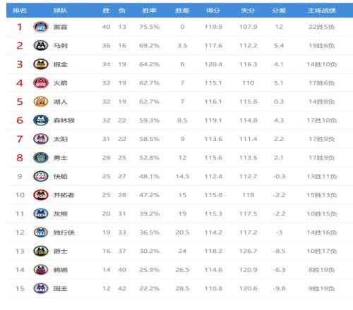 今日比賽后快船、開拓者排名互換,其他西部球隊(duì)排名不變。