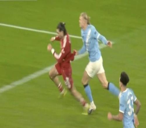比賽最后階段,利物浦門將阿利松棄門參與進攻,切爾基抓住機會從中場吊射空門。就在皮球滾向球網之際,哈蘭德與索博斯洛伊雙雙回追。過程中,索博斯洛伊拉拽哈蘭德球衣,被認定為“破壞明顯進球機會”;而哈蘭德隨后也回手拉了對方一把。