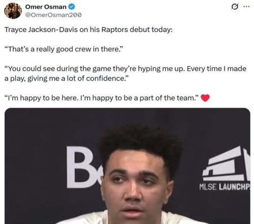 賽后TJD談及首秀表現時坦言:“猛龍是一支非常出色的隊伍,你們可以看到比賽中他們一直都在為我加油,每一次我完成快攻,他們都給我很大的信心,真的很高興來到這里,成為團隊的一員。”
