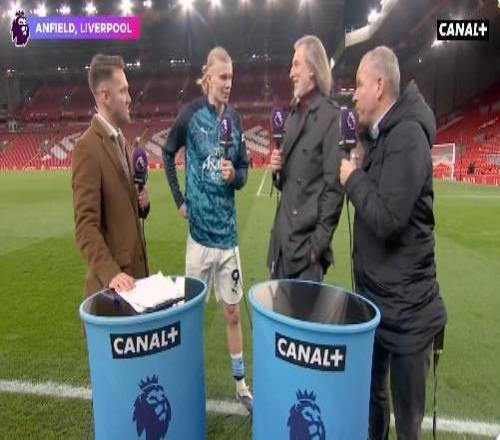 英超第25輪,曼城客場2-1戰勝利物浦,曼城前鋒哈蘭德賽后接受了CANAL+體育的采訪。