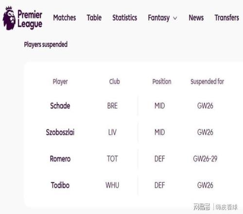 同樣是紅牌,熱刺的羅梅羅就沒有那么幸運了,英超官方信息顯示,羅梅羅需要停賽四場,由于熱刺足總杯出局,四個對手都是來自英超,分別是紐卡斯爾、阿森納、富勒姆和水晶宮,剛好在客場挑戰利物浦的時候,可以回歸賽場。