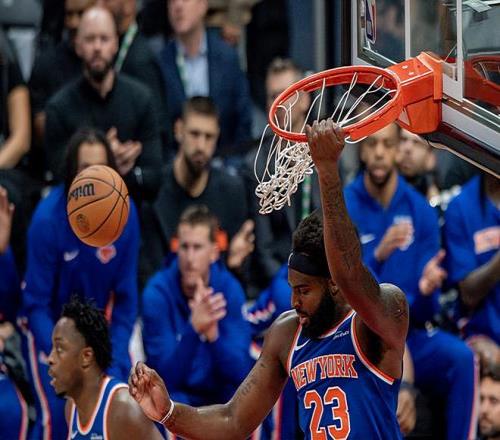 本場比賽中,尼克斯的替補中鋒米切爾-羅賓遜(Mitchell Robinson)的表現還是相當突出的。羅賓遜全場出場15分58秒,投籃2中1,罰球8中3,得到了5分9籃板2助攻的數據,還有1次犯規,正負值則是達到了全場第三高的+15。羅賓遜的出場時間并不多,但是他還是展現出了自己全面的才能。羅賓遜在進攻端確實是粗糙了一些,他確實是沒有能力得到更多的分數,甚至他在罰球線上的穩定性也是一塌糊涂的。不過羅賓遜在前后場籃板爭搶方面的作用依然非常明顯,他也是在出場時間非常有限的情況下拿下了大量的前場籃板。不僅如此,羅賓遜在護筐和內線防守方面也是能夠起到一些作用的。羅賓遜在攻防兩端都還是起到了很好的效果的,他在場上時球隊的局面一片大好,這也能夠體現在他超高的正負值上。