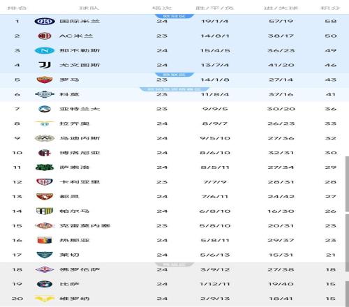本輪戰罷,意甲積分榜的形勢進一步明朗,國際米蘭以58分繼續強勢領跑,對第二名AC米蘭的領先優勢擴大到了8分,那不勒斯積49分排名第三,驚險戰平的尤文圖斯積46分,暫列第四,但僅領先身后的羅馬3分,歐冠資格的爭奪依然充滿變數。