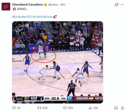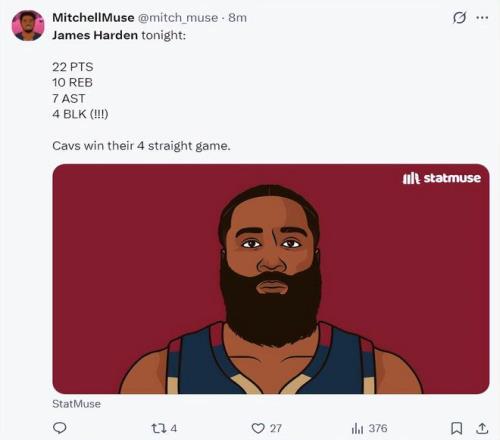 這場比賽詹姆斯-哈登再度成為克利夫蘭的超級英雄,在上一場對陣國王的末節他連續命中關鍵三分,末節4中4拿到15分(7分鐘),而這場比賽對陣聯盟頂級豪強掘金,哈登在末節又用三分球幫助騎士續命。