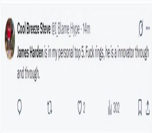 騎士球迷:哈登在我心目中一直以來都是聯盟前五的球員,別管什么獎杯了,他就是一個勇于創新的球員。
