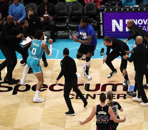 活塞隊前往客場挑戰黃蜂隊,后者正處于9連勝之中,這也是聯盟現存最長連勝紀錄??山Y果呢?活塞隊反客為主壓著黃蜂打,杜倫打爆迪亞巴特,二人爆發大沖突引起混戰,杜倫、迪亞巴特、布里奇斯和斯圖爾特4人被驅逐。即便如此活塞隊還是牢牢掌控著比賽走勢,一鼓作氣建立起16分的領先優勢,穩扎穩打從客場帶走勝利,4分險勝對手,成功終結了對手的9連勝。