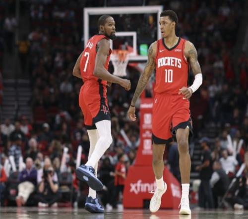 火箭本賽季防守端的表現十分出色,場均只丟110分,是聯(lián)盟失分第四少的。而在籃板上,更是搶下48.8個,進攻籃板16個,兩項都是聯(lián)盟最多。不過進攻端上表現不太好,特別是三分球,場均只能命中11.3記。杜蘭特本賽季場均拿到25.9分5.3籃板,申京則拿到20.8分9.5籃板6.3助攻,2人也都入選全明星陣容。