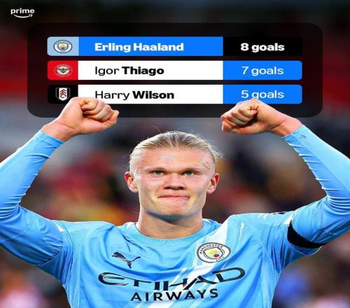 根據(jù)Prime Video Sport的統(tǒng)計,哈蘭德本賽季至今已經(jīng)8次在英超比賽中打進(jìn)制勝球,同期在這項數(shù)據(jù)上他位列英超所有球員的第一位,領(lǐng)先于布倫特福德的前鋒伊戈爾-蒂亞戈(7球)以及富勒姆的邊鋒哈里-威爾遜(5球)。