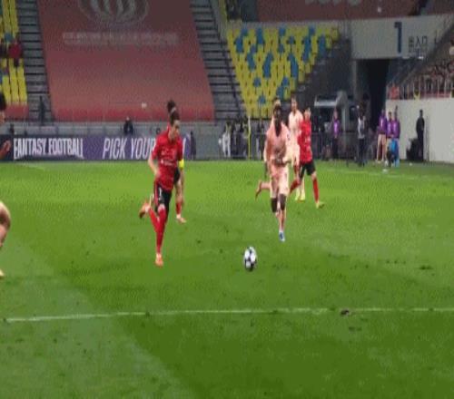 第1分鐘,開場僅僅23秒,金順凱禁區內放倒對手,主裁果斷判罰點球,相馬勇紀主罰點球命中,申花早早地0-1落后了!
