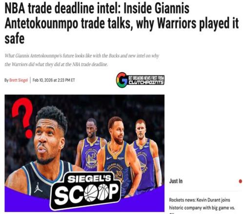 ClutchPoints名記Brett Siege在最新的報道中談到這一話題也給出類似說法,指出勇士隊最初的目標是追求字母哥,接著又和在截止日前就鵜鶘墨菲交易進行了多輪對話,勇士曾報價2首輪+庫明加,鵜鶘堅持索要3首輪,最終雙方談崩后勇士才選擇拿下波神。