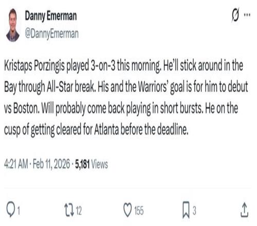 根據(jù)勇士隊記Danny Emerman報道,球隊新援波神今早參加了3對3訓練,接下來他將繼續(xù)留在灣區(qū),直到全明星周末結(jié)束。
