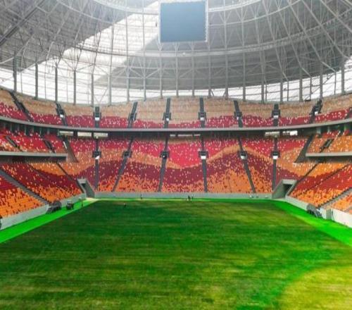 目前,草坪鋪設工作已經基本完成,所有根莖全部修剪到位,場地噴施了保護性殺菌劑和葉面肥,鋪沙工序也已經完成。