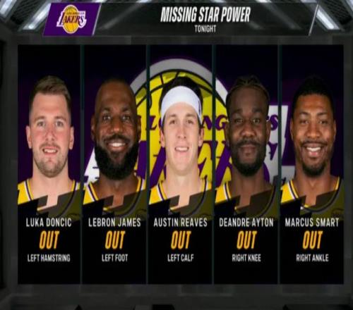 北京時間2月11日,NBA2025-26賽季常規(guī)賽迎來西部焦點之戰(zhàn),洛杉磯湖人隊坐鎮(zhèn)主場,繼續(xù)迎戰(zhàn)圣安東尼奧馬刺隊。讓人擔心的是,背靠背的湖人隊迎來嚴重的傷病潮,球隊官方確認,五大核心詹姆斯、東契奇、里夫斯等人全部缺席,昨天主場敗給聯(lián)盟第一的雷霆后,還面臨背靠背作戰(zhàn)的嚴峻體能考驗,缺兵少將加上體能劣勢,讓湖人的處境雪上加霜。