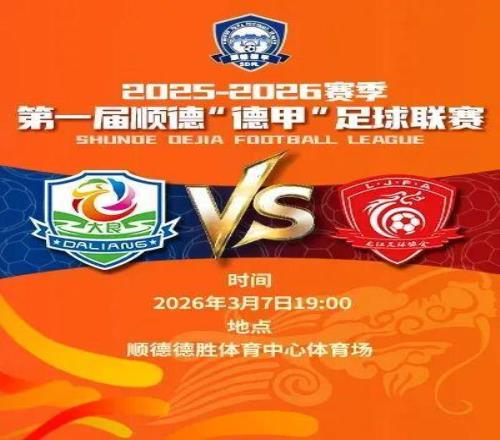 揭幕戰將于2026年3月7日19:00-21:30舉行,比賽地點為順德德勝體育中心體育場,票價9.9元/張,非常惠民。揭幕戰為大良雙皮奶力酒隊VS龍江沙發隊,期待雙方給大家獻上一場精彩的比賽。