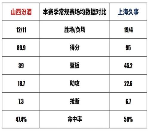 本賽季常規(guī)賽場(chǎng)均數(shù)據(jù)對(duì)比