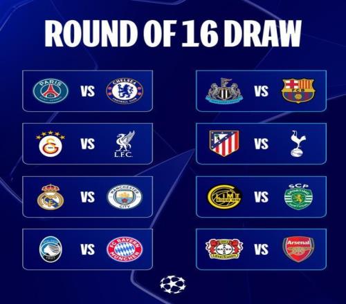 閃耀哥和里斯本之間的勝者,下輪將面對阿森納和勒沃庫森之間的勝者。兵工廠貴為英超與歐冠聯賽階段雙料榜首,卻因其過分求穩的球場表現飽受各方質疑。無論如何,運氣女神站在他們一方,他們與藥廠組成“廠”隊德比,避開共握30座歐冠的死亡半區。槍迷淚流滿面:有記憶來,沒看過我廠更好的簽。死忠皮爾斯·摩根喜開賽博香檳:老天爺,好簽……阿森納夫復何求。